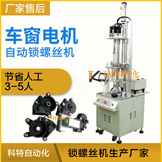 車窗電機(jī)核心是升降器,設(shè)置在每個車門內(nèi)置可以變換轉(zhuǎn)運(yùn)方向的電動機(jī),電機(jī)產(chǎn)品在裝配的過程中,打螺釘便成為一種最基本的操作,通常是人工利用電動螺絲刀 或者手工對產(chǎn)品進(jìn)行一顆一顆擰緊裝配,但是這種人工組裝方式使人工成本高,勞動效率低和容易導(dǎo)致產(chǎn)品質(zhì)量差,不利用實(shí)現(xiàn)大規(guī)模化生產(chǎn)。