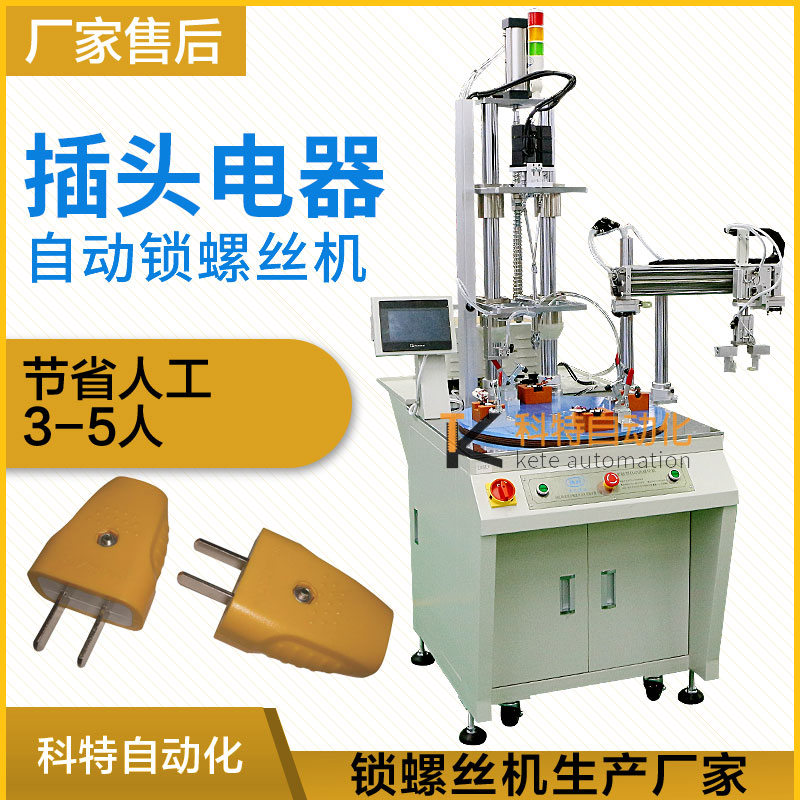電源插頭作為一種日常用品,在生活中被廣泛使用。因此它的使用安全性也越來越引起人們的重視?,F(xiàn)在常用的電源插頭由于為了便于插腳能順利的插入到插座的插孔中,一般是插座的插孔的內徑大于插腳的外徑并且插孔的絕緣上蓋上設置有倒角。但是這種結構也帶來了安全隱患。因為在插孔的絕緣上蓋處,插腳與插孔的內壁之間存在著一定的縫隙,在插頭的插拔過程中,很容易從縫隙中帶入雜質,引起短路,更危險的是,小孩有可能將手指伸入到縫隙中,有著觸電的危險,在生產中需要螺絲來緊固內部的螺絲,傳統(tǒng)手工放置螺絲和對準螺絲頭部仍需要占用大量的工作時間和精力,因此整體效率提升比較低,有而且很容易滑牙擰不緊等問題造成產品質量差,廠家會考慮到電動螺絲刀或者氣動螺絲刀擰緊兩種,后者通過電動或者氣動的方式產生旋轉動力,以代替頻繁手工的擰緊動作,雖然在生產上堅強了勞動的強度,但仍然存在生產效率得不到提升。