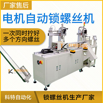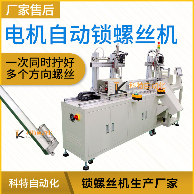 本案例主要為電機設計自動鎖螺絲機,電機型號有很多,其主要作用是產生驅動轉矩,作為用電器或各種機械的動力源,產品長桿電機驅動,在裝配加工擰螺絲工序中要求非常高,電機機芯上的2顆螺絲自動擰緊和電機的尾端一顆螺絲自動擰緊,廠家要求產品要同時鎖付好所有的螺絲,而且扭力矩精確到位,為此科特自動化根據(jù)產品結構以及廠家的生產要求進行設計水平橫向自動鎖螺絲機。